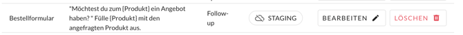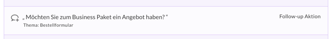 Die Follow-Up Action ermöglicht das gezielte Ausspielen eines weiteren Themas oder eines Formulars nach einer KI Agenten-Antwort. Sie ermöglicht so das sinnvolle Weiterführen der Gespräche. Nutzer:innen werden gezielt durch die Prozesse hindurchgeleitet. Im Folgenden wird die Einrichtung einer Follow-Up AI Action schrittweise beschrieben.