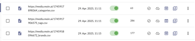 - Export aller Vendors, Tags und Produkttypen als CSV aus Shopify oder manuelle Erstellung.