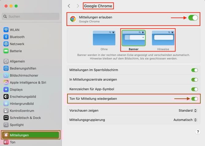 Typical causes of missing notifications and alert tones, and how to fix them in macOS and common browsers