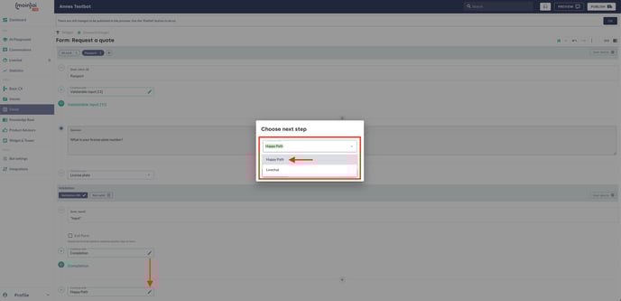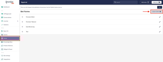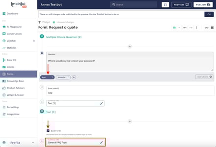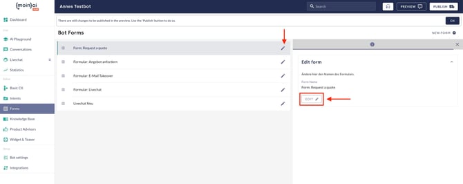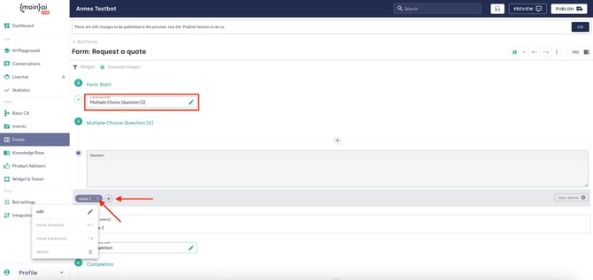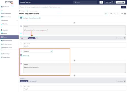 Important: The form will only be used in the live AI chatbot once it has been published.