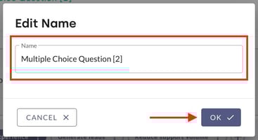 The generic name ‘Multiple Choice Question [2]’ for the query step can be customised. This helps with recognising and handling the form steps. Click on the icon next to the name and then on Edit to open the input mask for renaming. Click OK to apply the new name.