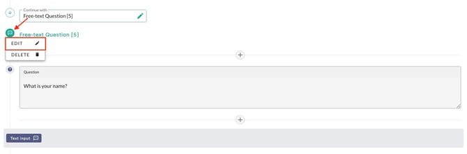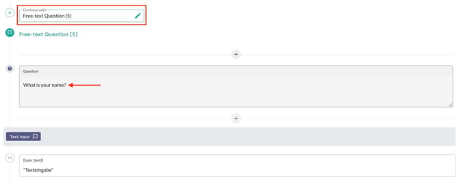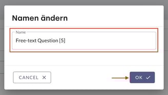 The generic name ‘Free-text Question [5]’ for the query step can be customised. This helps with recognising and handling the form steps. Click on the icon next to the name and then on Edit to open the input mask for renaming. Click OK to apply the new name.