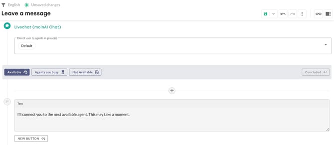 - The paths for the scenarios Available, Agents are busy and Not available are then defined.