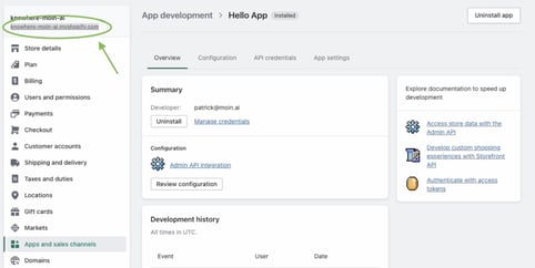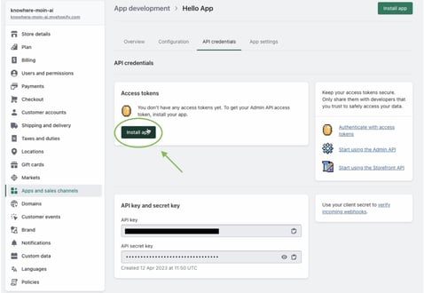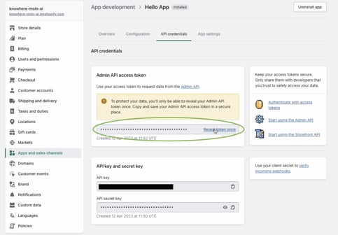After the installation of the app the "Admin API access token" can be downloaded.