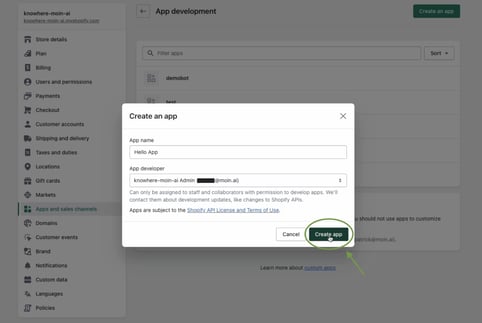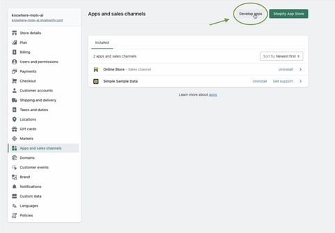 For the technical integration, open "settings" in Shopify and then select "apps and sales channels".