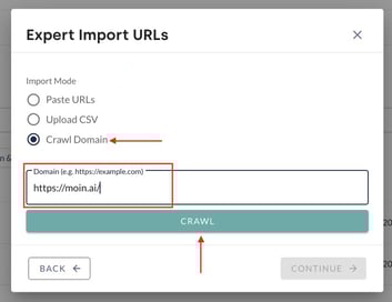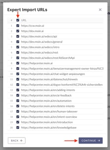 The expert import of URLs allows you to create all subdomains of a website at the same time. This speeds up the import process and ensures that all relevant subdomains are stored completely in the knowledge base.The implementation is described step by step below.