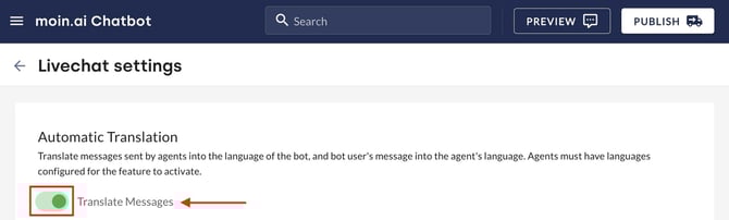 In the Automatic Translation section, activate the Translate Messages toggle.