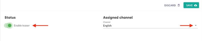 2. In the Status area, the teaser can be activated or deactivated. The assignment to a channel can also be changed here.