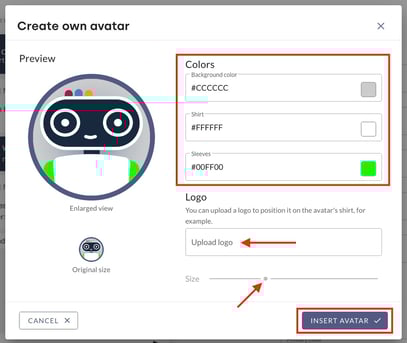 4. Click Insert Avatar to apply the settings.
