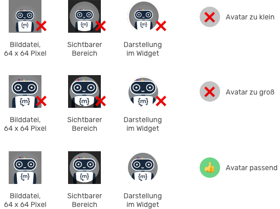 It is recommended to use the Moini design, as this avatar has already been fully optimised for the widget's technical and visual requirements.