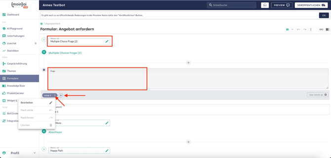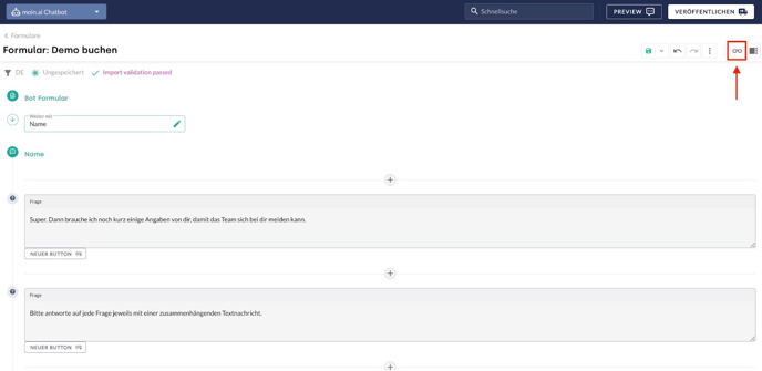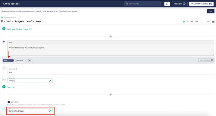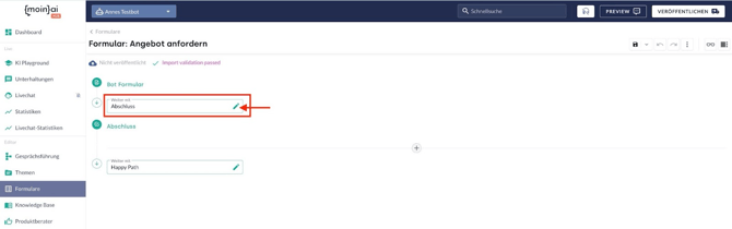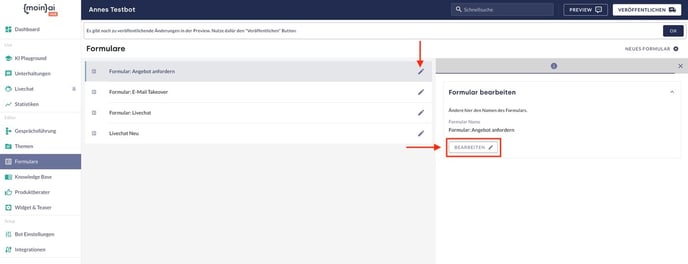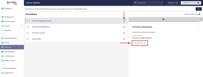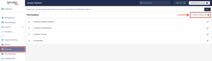Wichtig: Erst mit der Veröffentlichung des Formulars wird es im Live KI-Chatbot angewendet.