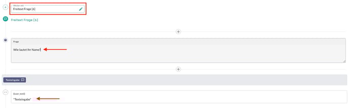 Die Freitext Frage ermöglicht eine beliebige Texteingabe. Freitextanfragen sind immer dann geeignet, wenn variable Antworten erwartet werden, z.B. Namen, Adressdaten oder Kundennummern.