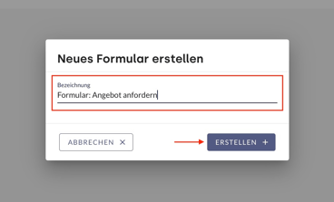 - Ein Klick auf Erstellen kreiert das Formular.