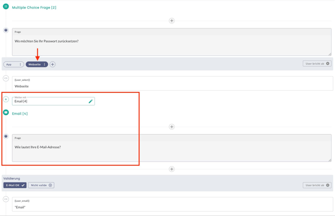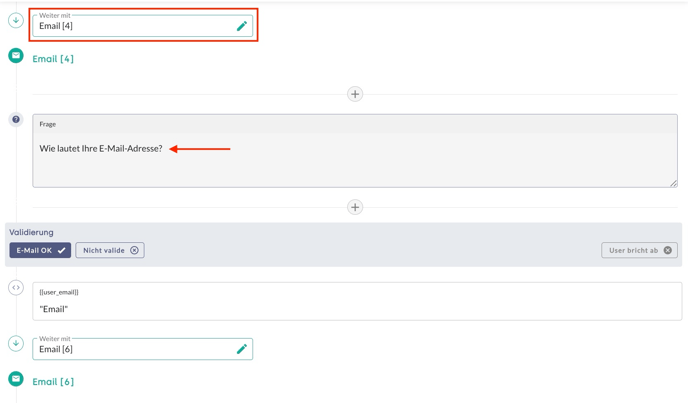 - Nicht valide: E-Mail ist invalide. Hier kann der Verlauf nach einer invaliden E-Mail-Adresse definiert werden.