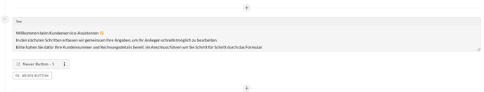 Die einfache Texteingabe ermöglicht das Bereitstellen von Informationen, ohne dass eine Antwort der Nutzer:innen notwendig wird. Anders als bei Fragen mit Freitextantwort, Ja/Nein-Buttons oder Multiple-Choice-Auswahl erscheint hier nur ein Textblock, aber keine Möglichkeit zur Antwort. Hierzu wird das Conversational-Design-Element Text ausgewählt.
