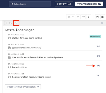 - Getätigte Änderungen im Preview KI-Chatbot testen