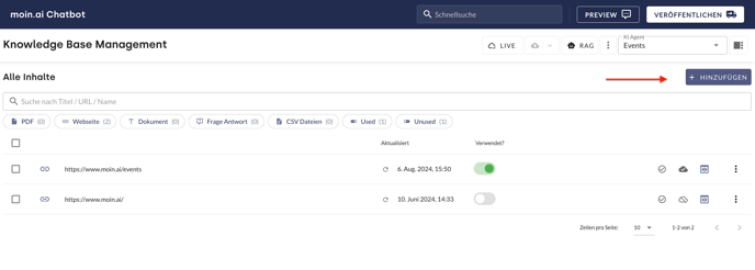 1. Mit einem Klick auf den Button Hinzufügen in der oberen rechten Ecke.