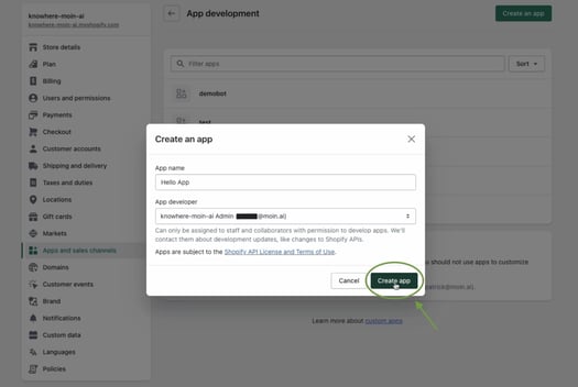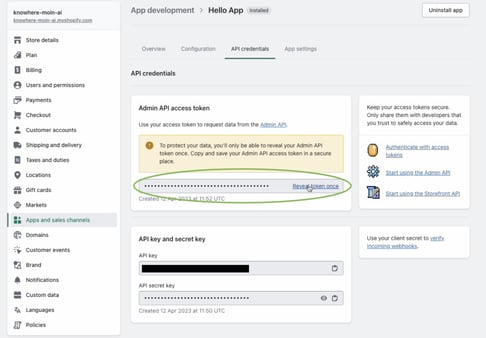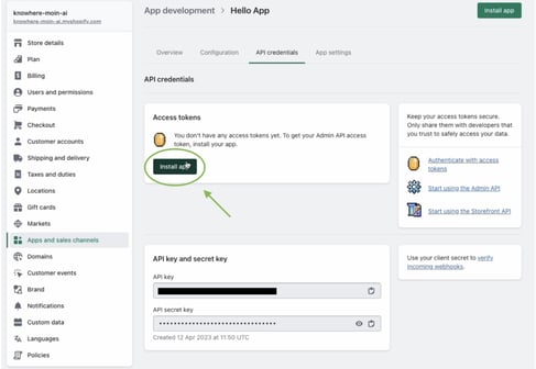 Lade nach dem Installieren den „Admin API access token“ herunter.