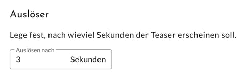 Der Teaser wird regulär nach einer Sekunde ausgespielt. Diese Zeit kann in jedem Teaser im Abschnitt Auslöser angepasst werden:
