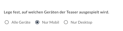 Ein Teaser kann im Abschnitt Auslöser auf allen Endgeräten oder eingeschränkt nur auf der mobilen Version oder der Desktop Version der Webseite ausgespielt werden.