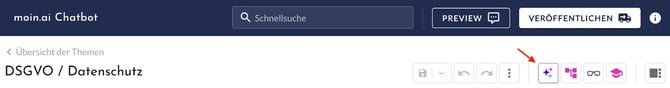 In dem Hub-Bereich Themen gibt es zunächst eine Übersicht über die angelegten Themen des KI-Chatbots.