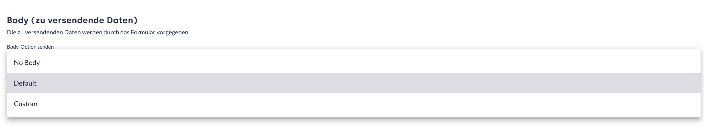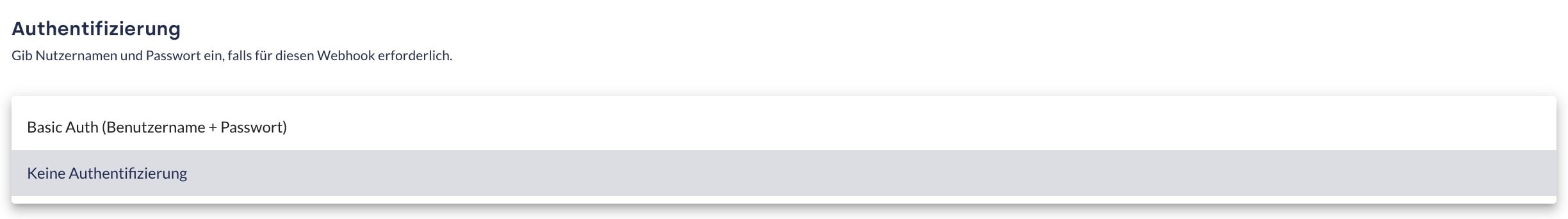- Authentifizierung: Falls für den Webhook eine HTTP-Basic-Authentifizierung erforderlich ist, können Nutzername und Passwort angegeben werden. Alternativ kann auch ein Token-basiertes Authentifizierungssystem (zB Bearer Token) verwendet werden, indem entsprechende Header gesetzt werden.
