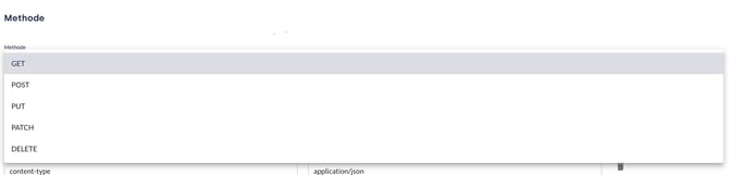 - Methode: Die HTTP-Methode, ist die Methode nach der der Webhook die Daten sendet. Übliche Methoden sind POST (zum Übermitteln von Daten) und GET (zum Abrufen von Daten). In manchen Fällen sind auch andere Methoden wie PUT, PATCH oder DELETE möglich.