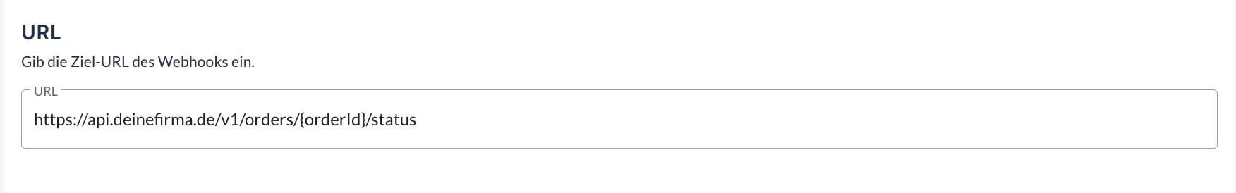 - URL: Hier erfolgt die Angabe der Ziel-URL des Webhooks. Sie ist die Adresse der API, mit der der Webhook kommuniziert. Es kann sich um eine interne oder externe API handeln.