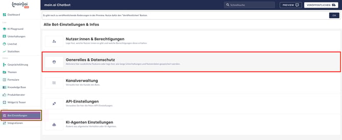 Webscraping Optionen für alle abgelegten und künftigen Ressourcen werden zentral über den Menüpunkt Bot Einstellungen -> Generelles & Datenschutz im Bereich Allgemeine Webscraping Optionen hinterlegt.